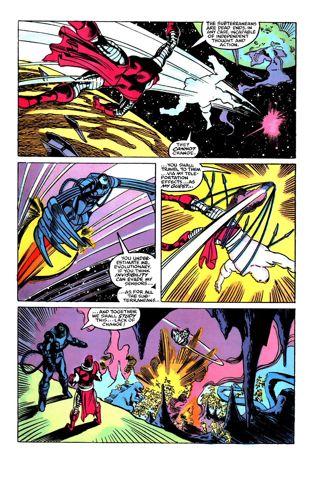 Resistencia: Nivel muro+ (En su Estado Incompletodesde su primera aparición podía sobrevivir caídas que lo hacían agrietar el suelo rocoso) | Multi-estructura+ (En su Estado Incompleto, pudo sobrevivir a la explosión que colapsó todo un templo-esfinge sin sufrir ningún rasguño) | Multi-ciudad+ (En su Estado Incompleto, sobrevivió a los rayos de energía emanados de un arma que previamente había dejado fuera de combate a los integrantes de los 4 Fantásticos) | Nivel lunar+ (En su Estado Máximo, puede soportar sin ningún problema el impacto de los rayos ópticos de un Cíclope desatado en múltiples ocasiones, y como referencia, Cíclope al máximo poder es capaz de partir un planeta a la mitad) | Multi-estelar+ (En su Estado Máximo, pudo resistir los ataques combinados más poderosos de Cíclope y Black Bolt. También logró tolerar sin mucha dificultad los golpes y descargas de energía de un Cable desatado como el anteriormente mencionado) | Multi-galáctico+ (Con su Armadura Celestial, se menciona que sus protecciones son las mismas que las de un Celestial común, y como referencia, para la creación de los cuerpos de los Celestiales se utiliza una galaxia como molde. Pudo sobrevivir al impacto del arma asgardiana conocida como Jangborm, la cual para dicha instancia estuvo encantada para tener la capacidad de atravesar las armaduras de los Celestiales. También soportó varios de los rayos más poderosos del Alto Evolucionador anteriormente mencionado) | Superior+ (Con sus escudos y barreras adicionales) | Invulnerable+ al poder manipular la estructura molecular de su cuerpo para evitar ataques | Inmortal+ (Con la ayuda de su Cámara Rejuvenecedora puede escapar de la muerte o a través de un poco de su sangre puede regresar a la vida)