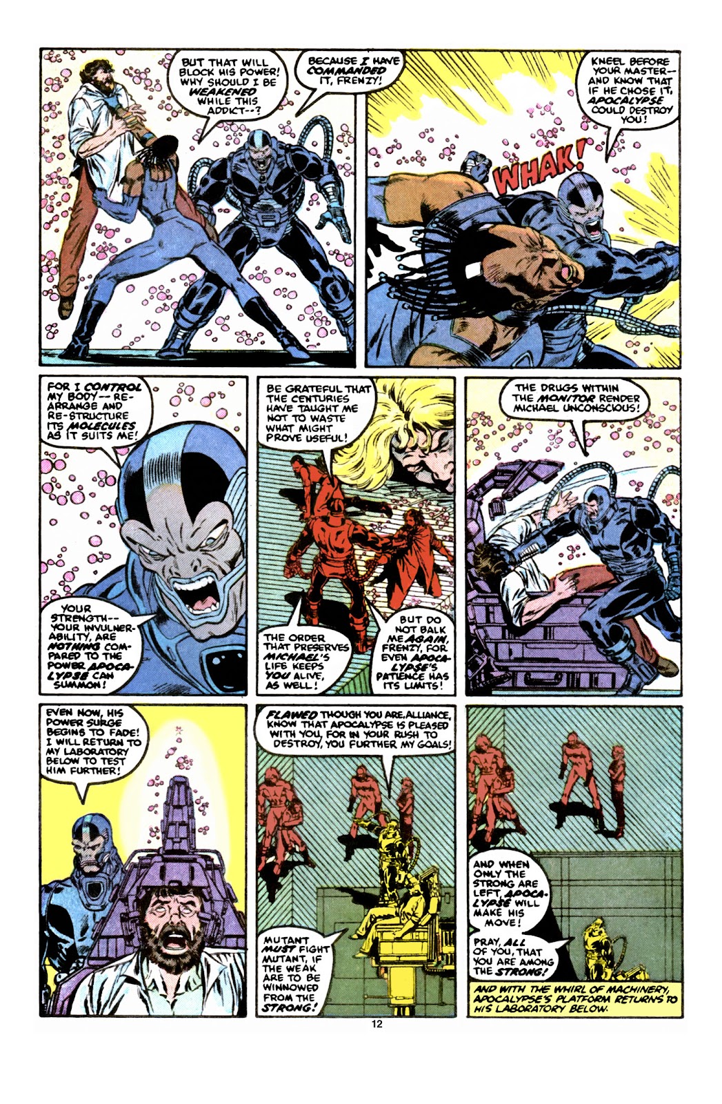 Estado Incompleto: Son todos los momentos de la historia de Nur cuando este no estuvo en sus niveles plenos de poder o cuando fue despertado de su Cámara Rejuvenecedora antes de lo debido, provocando que todos sus atributos físicos decaigan de sobremanera, tan solo estando a la par con los X-Men.