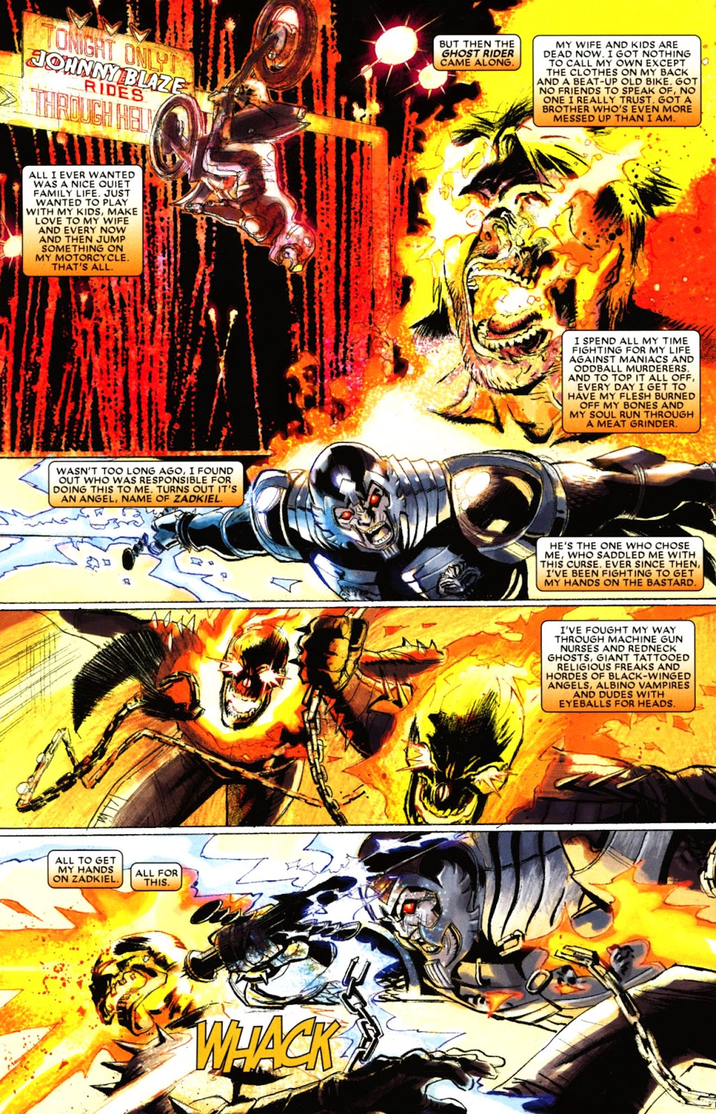 Johnathon Blaze sería adoptado por la familia de un piloto exitoso tras la muerte de su padre en un acto fallido. Ocultaría su pasión por el deporte extremo durante un buen tiempo a causa de la muerte de su madrastra en un accidente, y el desarrollo de cáncer en su padrastro lo incitaron a tomar medidas drásticas. Johnny realizaría un pacto con el Diablo para salvar la vida de este último, pero eso no evitaría que su padrastro muriera en un acto fallido. Adquiriendo una nueva forma espectral a causa del pacto, el nuevo Johnny se vería obligado a sucumbir en la vida sobrenatural para sobrevivir: Es Ghost Rider, el Espíritu de la Venganza!