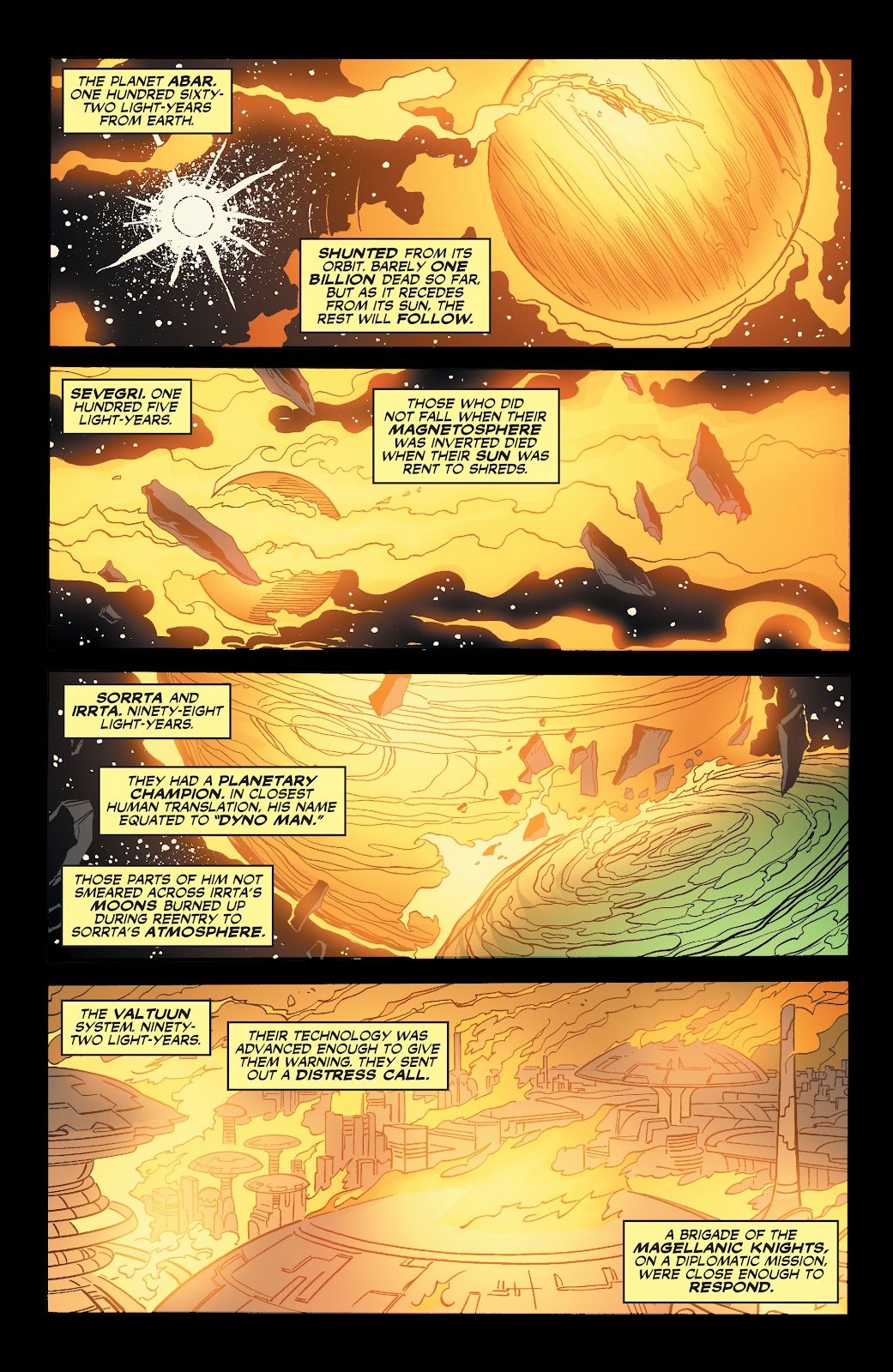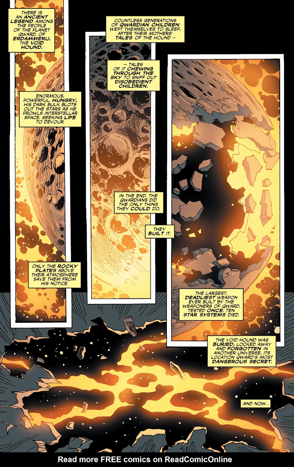 NOTA - El Void Hound pudo destruir 10 sistemas solares en una prueba pero no lo hizo instantáneamente, puesto que las descargas de energía emanadas por el arma actúan de manera lenta al consumir los planetas y estrellas de a poco, y recién cuando se utilizó el aparato contra la JLA tuvo la potencia de una única supernova.