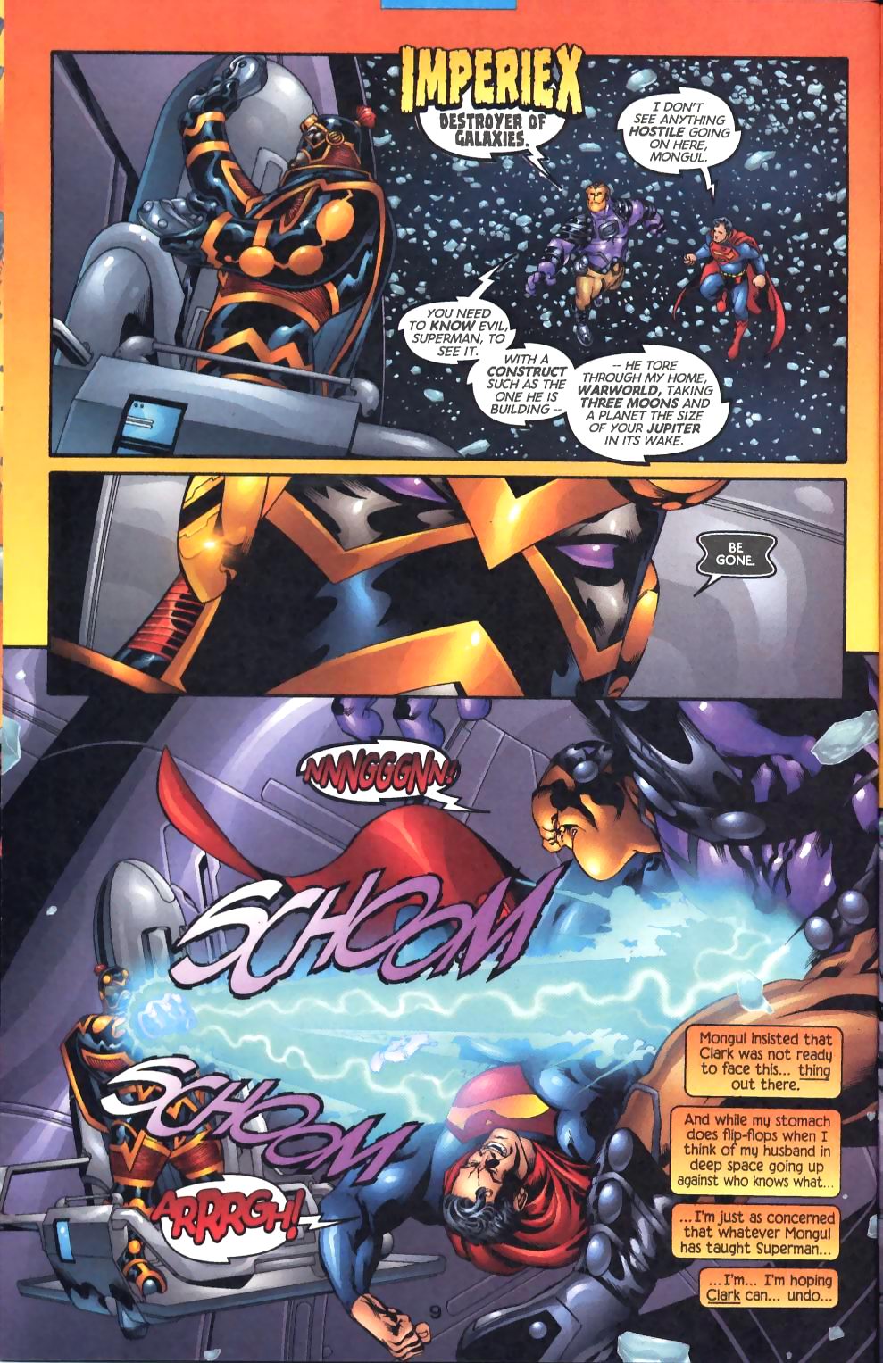 Fuerza (de choque): Lunar+ (Puede mandar a sus oponentes hasta Plutón usando el mínimo de su fuerza) | Planetaria+ (Es capaz de igualar los golpes normales de Superman) | Multi-planetaria+ (Retuvo una energía que hacía temblar y colapsar toda la Tierra cuando era más joven. También puede pelear mano a mano con Superman y estremecer todo el planeta) | Masivamente planetaria+ (Pudo derrotar a Hércules, también se mencionó que ella era mucho más fuerte que él. Estando debilitada fue capaz de mantener un combate con una sonda de Imperiex, y como referencia, una sola sonda de Imperiex carga con su energía un arma con el poder para destruir tres lunas más un planeta del tamaño de Júpiter sin mayor dificultad) | Superior+