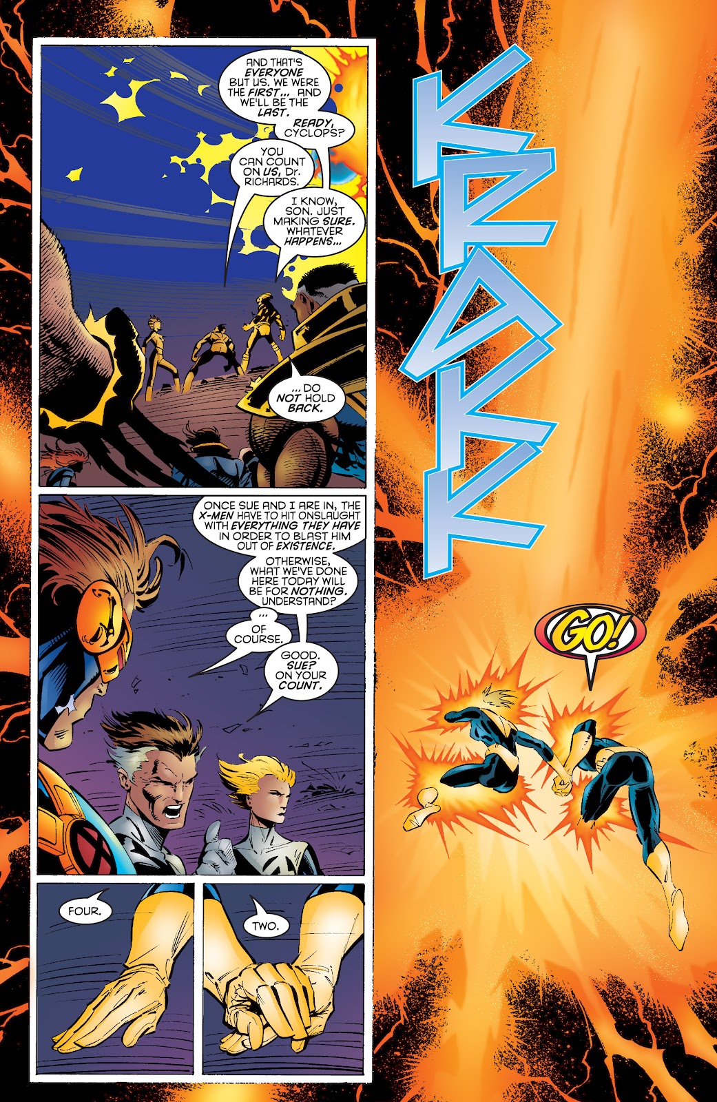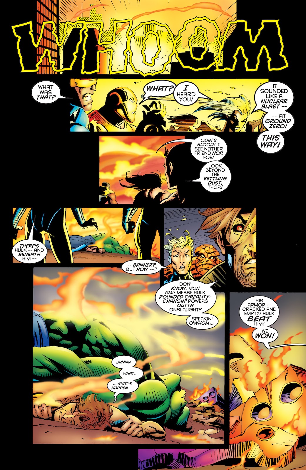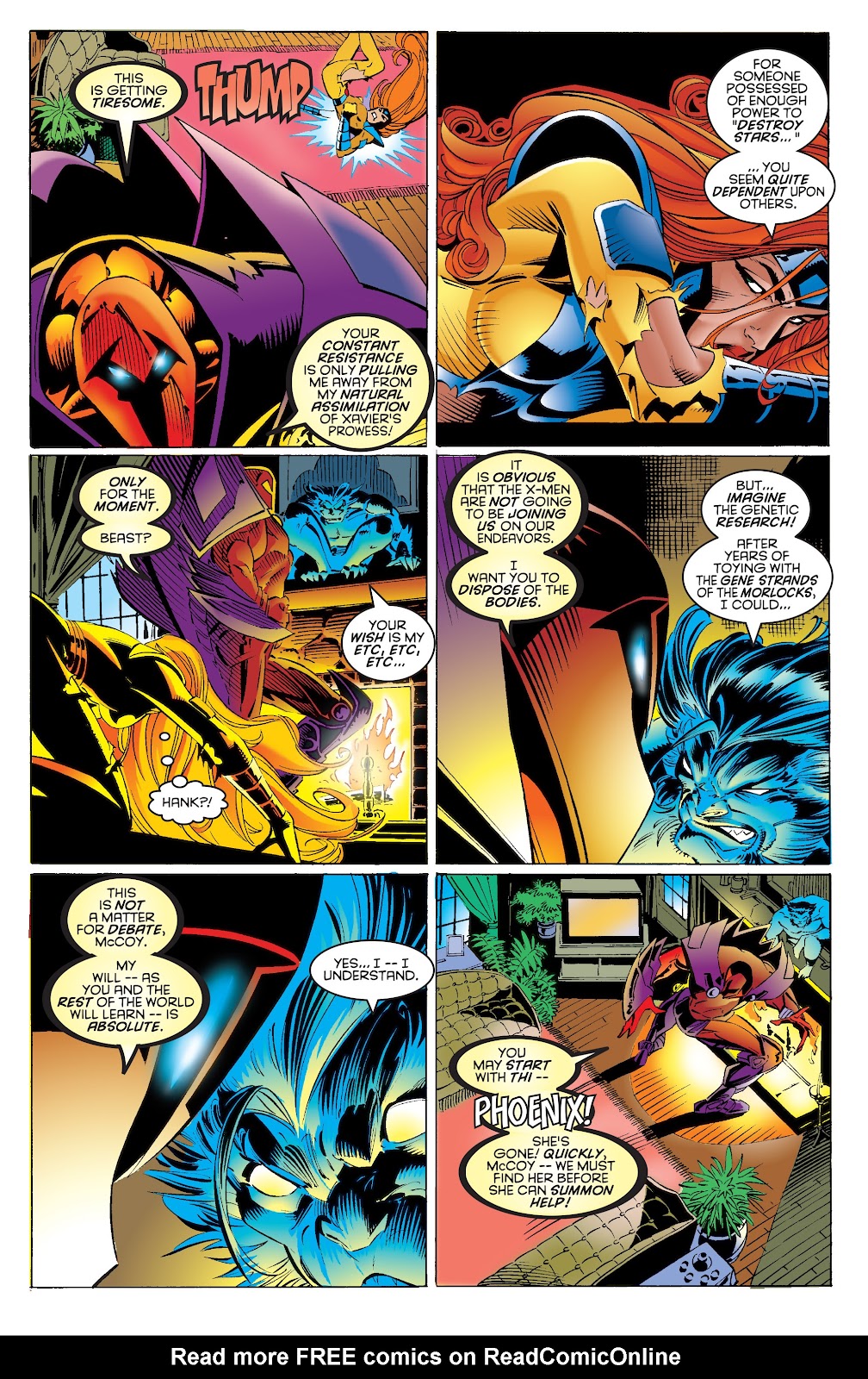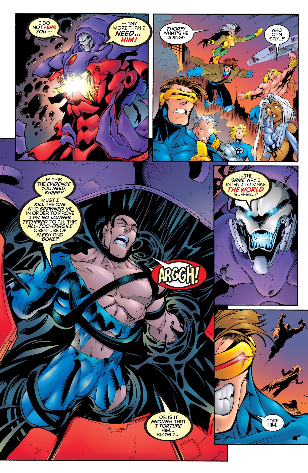 Omega Onslaught: Es el resultado de Onslaught adquiriendo los poderes de Franklin Richards al utilizarlo como contenedor de energía y posteriormente robar los poderes psiónicos del joven Nate Grey. En este estado todos los atributos físicos de Onslaught son incrementados notablemente y adquiere nuevas habilidades a una escala cósmica, siendo su evolución final una forma incorpórea hecha de pensamientos que no puede ser destruida pero sí contenida con los medios adecuados.