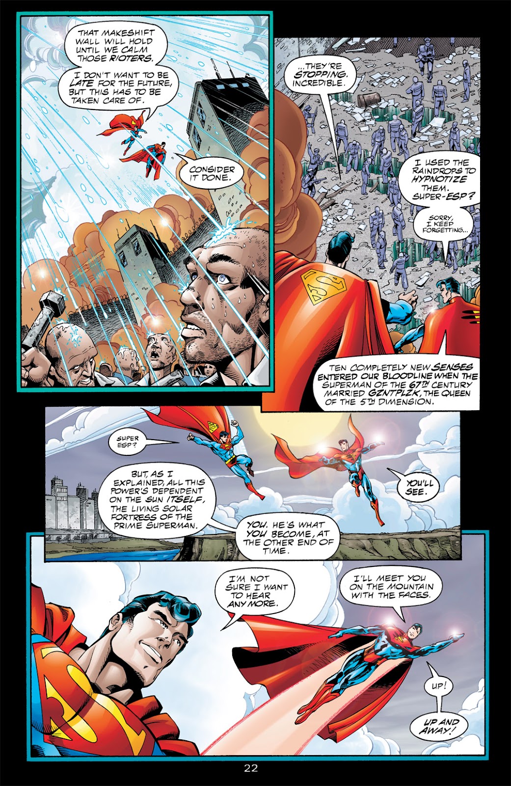 Fuerza (de choque y levantamiento): Planetaria+ (Un impacto de su visión de fuerza sería capaz de erradicar la nave del tamaño de un planeta de Master Metallo) | Estelar+ (Se recalca en múltiples ocasiones que es mucho más poderoso que el Superman Post-Crisis. También fue capaz de humillar con total facilidad al Superman All Star cuando este último todavía conservaba el nivel de un Superman regular) | Masivamente estelar+ (Se menciona en múltiples ocasiones que es más fuerte que la atracción gravitacional de una estrella en colapso, las mismas cuyas desestabilizaciones dan origen a un agujero negro) | Multi-sistema solar+ (Al ser reconocido como uno de los Supermanes más poderosos de la Dinastía, eso lo debería poner por encima del Superman All Star, el cual pudo rivalizar con el Solaris anteriormente mencionado en un combate a muerte del que pudo salir victorioso tras utilizar su máximo poder y acabarlo con un golpe fulminante) | Galáctica+ (Fue capaz de mantener todo el peso de una galaxia en movimiento utilizando la máxima capacidad de su visión de fuerza momentáneamente, y luego con la ayuda de Titano pudo reestablecer las dos galaxias al devolverlas a su posición original)