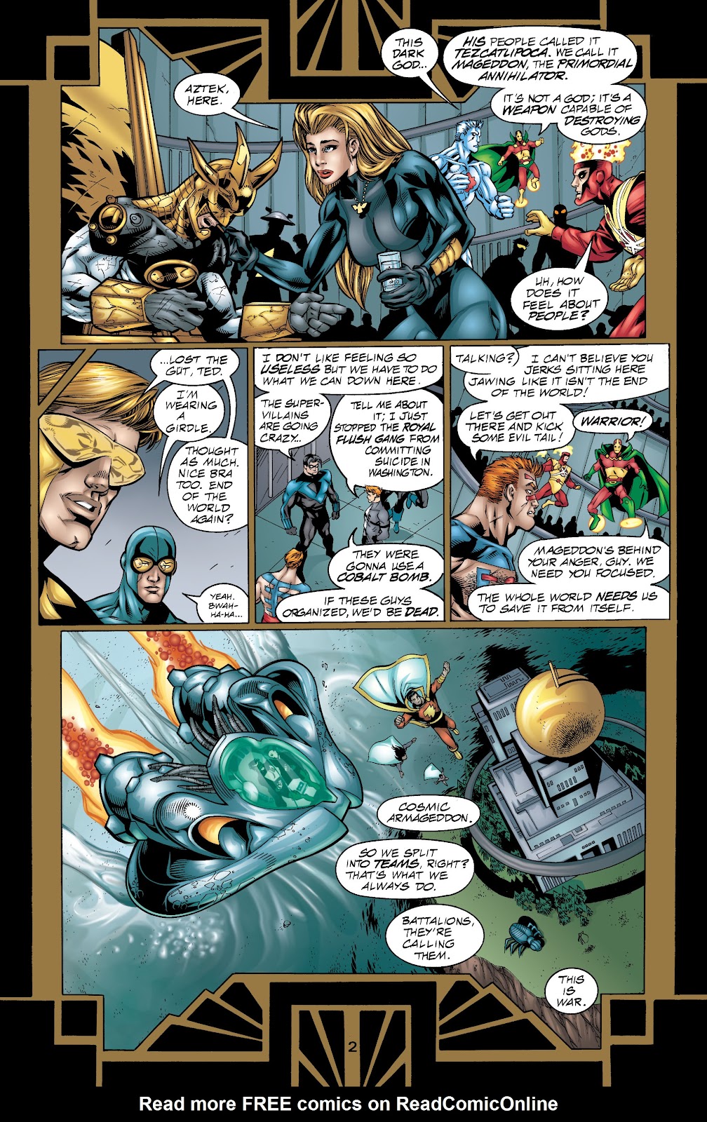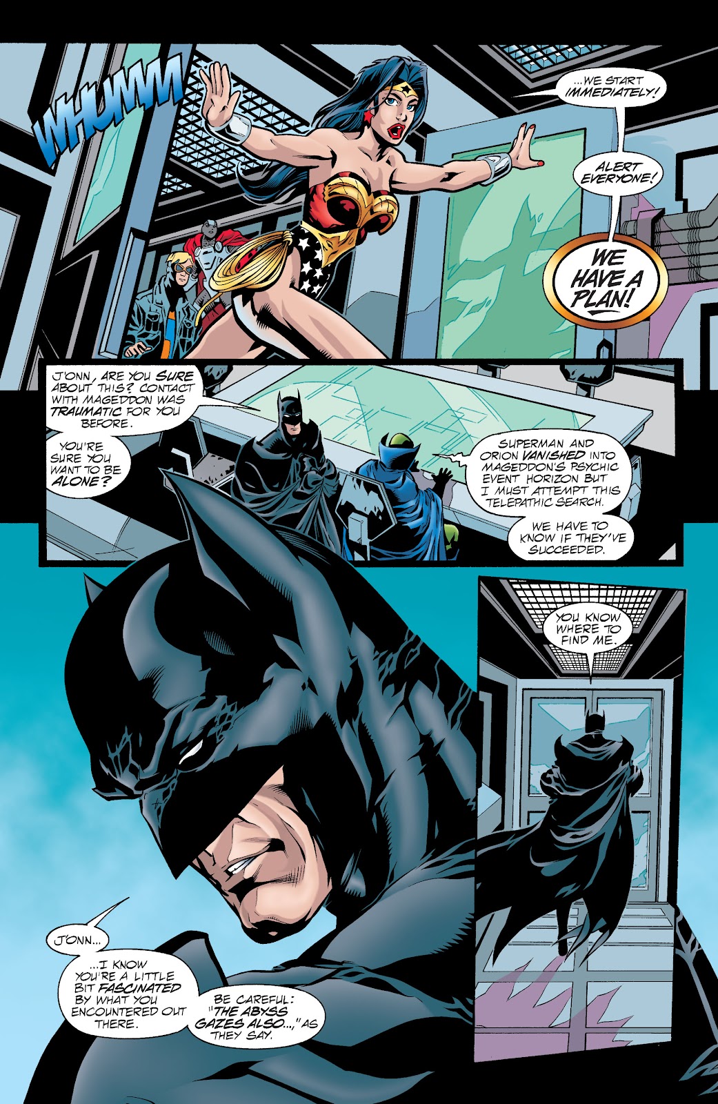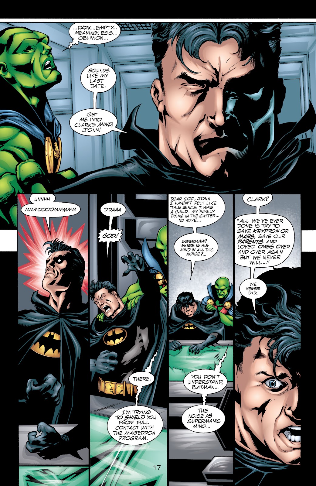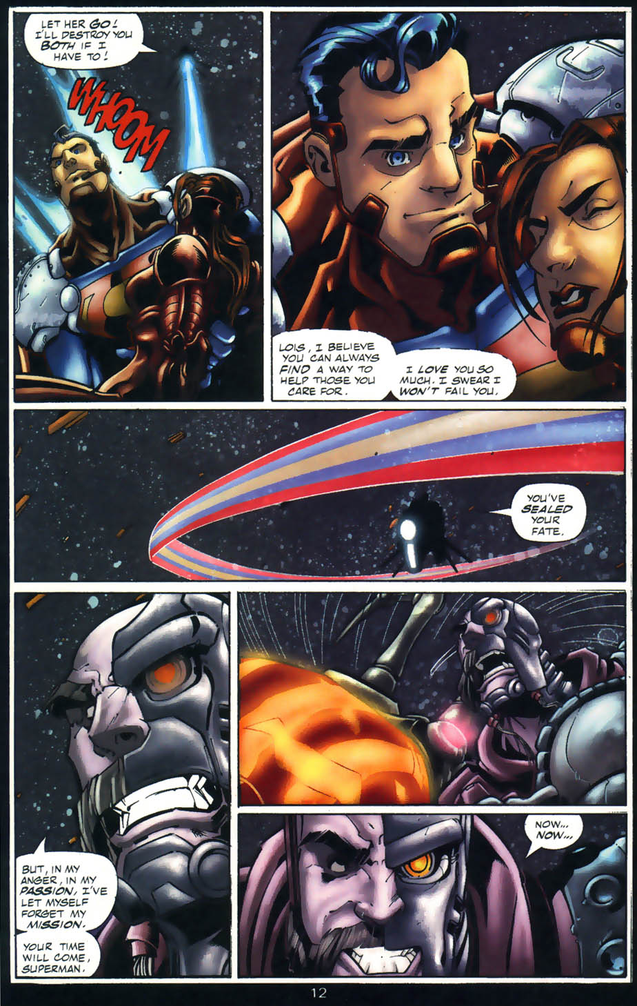 En el arco de World War Three, el antagonista principal fue un arma antiquísima de porte divino conocido como Mageddon, una nave de guerra autómata con un tamaño decenas de veces superior a una estrella. El superhéroe Aztek menciona que el funcionamiento interno de la nave consiste en aprisionar el alma de multitud de individuos que cumplan el rol de sustentar su cerebro mecánico y activar los mecanismos a través de pensamientos. Superman y Orion decidirían aventurarse en el interior de la nave para intentar apagarla, solo para enterarnos posteriormente por el escaneo de Martian Manhunter que Superman había sido capturado y aprisionado por la nave. Y efectivamente, Mageddon había convertido a Superman en uno de sus componentes para utilizarlo en contra de los héroes, pero realmente no hay hazaña de fuerza en este contexto, siendo que Mageddon de casualidad había atrapado a Superman para utilizarlo como fuente de energía adicional y que con o sin él de todas formas hubiera continuado su ataque a la Tierra. Superman solo estaba tratando de liberarse de las cadenas que lo sometían mientras Maggedon se aprovechaba de él y lo torturaba mentalmente, así que en esta situación no hay hazañas para el Hombre de Acero.