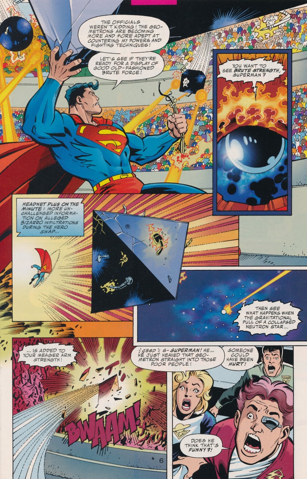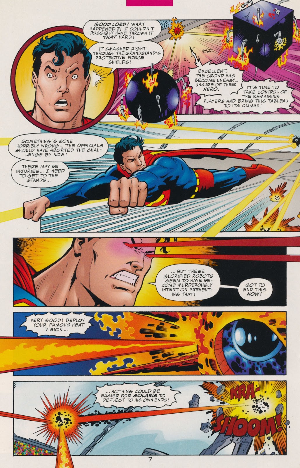 -En el arco de DC One Million, Superman se sometió a una prueba de fuerza y habilidad que lo llevaría hasta sus límites al enfrentarse contra unas máquinas adaptables, y Solaris desde las sombras planeaba sabotear el evento al añadirle momentáneamente la potencia gravitacional de una estrella de neutrones a los puños del Hombre de Acero, este último se sorprendió de su impacto ya que sabía que él no poseía tal nivel de fuerza, y de igual forma Solaris nos daba a entender que en condiciones normales Superman no era así de poderoso.