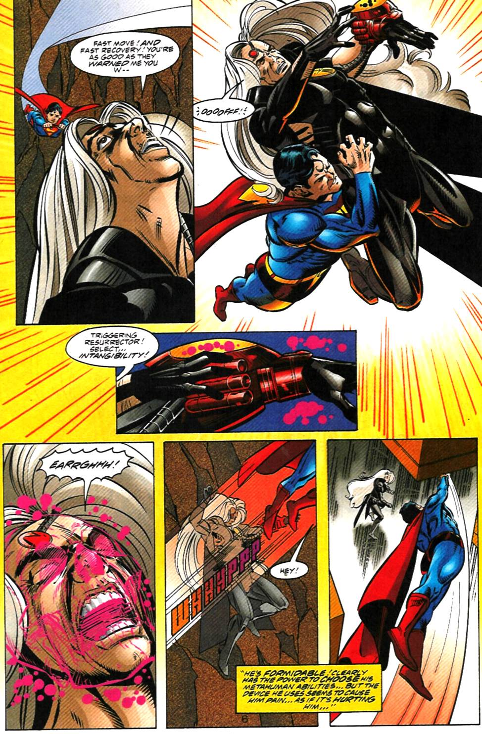-Posteriormente Superman se enfrentaría con Resurrection Man, un héroe del siglo 853 que lo derrotaría en combate fácilmente y lo superaría en cada aspecto imaginable, y como referencia, Resurrection solo tenía la potencia máxima equivalente a los poderes de un agujero negro.
