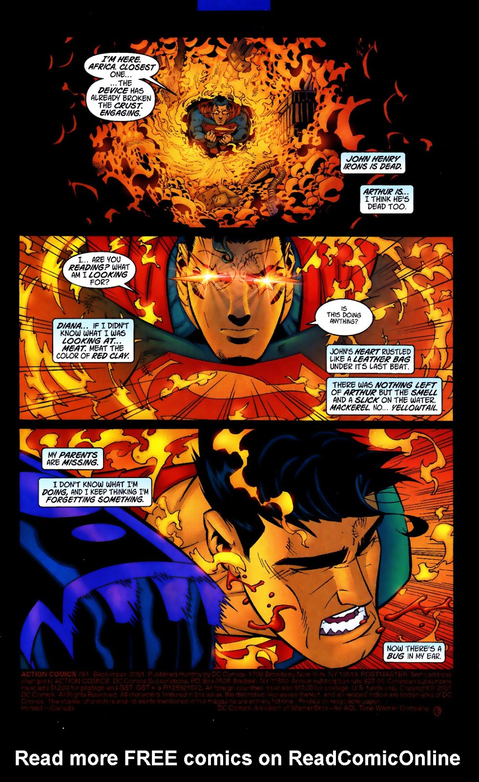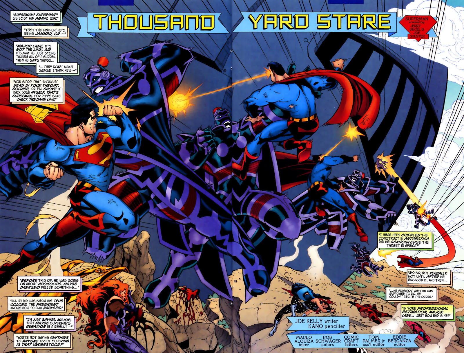 -Superman derrotó a una sonda de Imperiex luego de un duro combate y luego se encargó de atravesar el cuerpo de otra sonda.