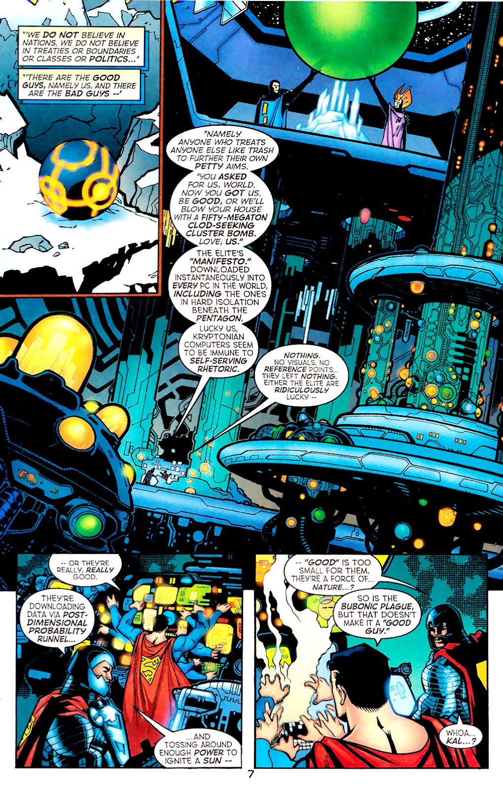 -Como se aclaró en el manifiesto de La Élite, Black y sus acólitos no respetan el concepto de naciones, tratados, fronteras, clases sociales o la política en general. Después de abandonar su ideal pragmático tras su primera derrota ante Superman, lo que continúa manteniendo es aquel desprecio por las estructuras o pilares de la sociedad, y lo ejemplifica con su comentario acerca de las guerras entre países: Él critica el fatal error de que en tiempos de guerra, la moralidad se convierte en un asunto de blanco y negro; es decir, que las poblaciones apoyan incondicionalmente a sus gobiernos cuanto se trata de esta clase de situaciones bélicas e inmediatamente ven al bando contrario como los malvados a vencer, y por ello, sus líderes aprovechan para sostener sus discursos en nombre de los "compromisos" que se deben hacer en tiempos de guerra y las decisiones en nombre del fin justifica los medios, lo que él califica como un acto nefasto que solo favorece a los intereses de los más altos.